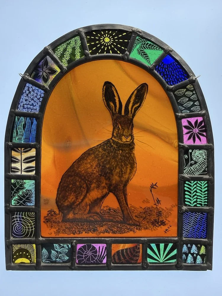 Finally, we are delighted to welcome back Harriet Love with her stained glass panels. Harriet’s designs are primarily inspired by nature, drawn from the world around her, either illustratively, symbolically, or for pattern.