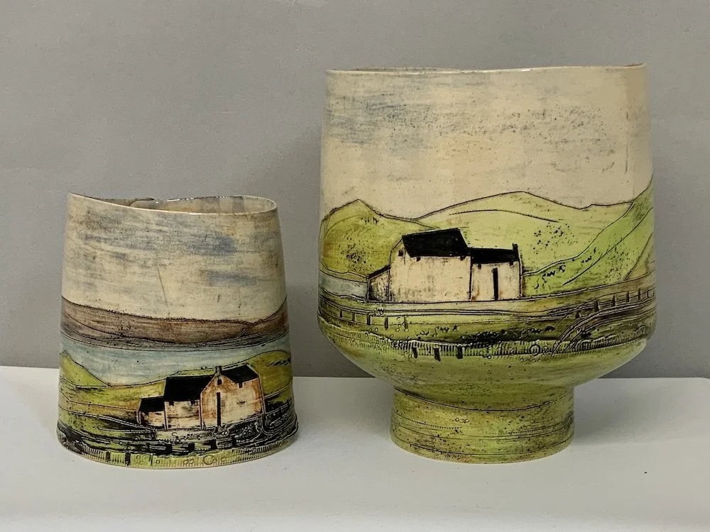 Denise Brown is a ceramic artist working from her studio on the family farm in Cambridgeshire. Her work is inspired by rural landscape, often informed by the surrounding Fens with its renowned skies,crops in fields and isolated farm buildings.